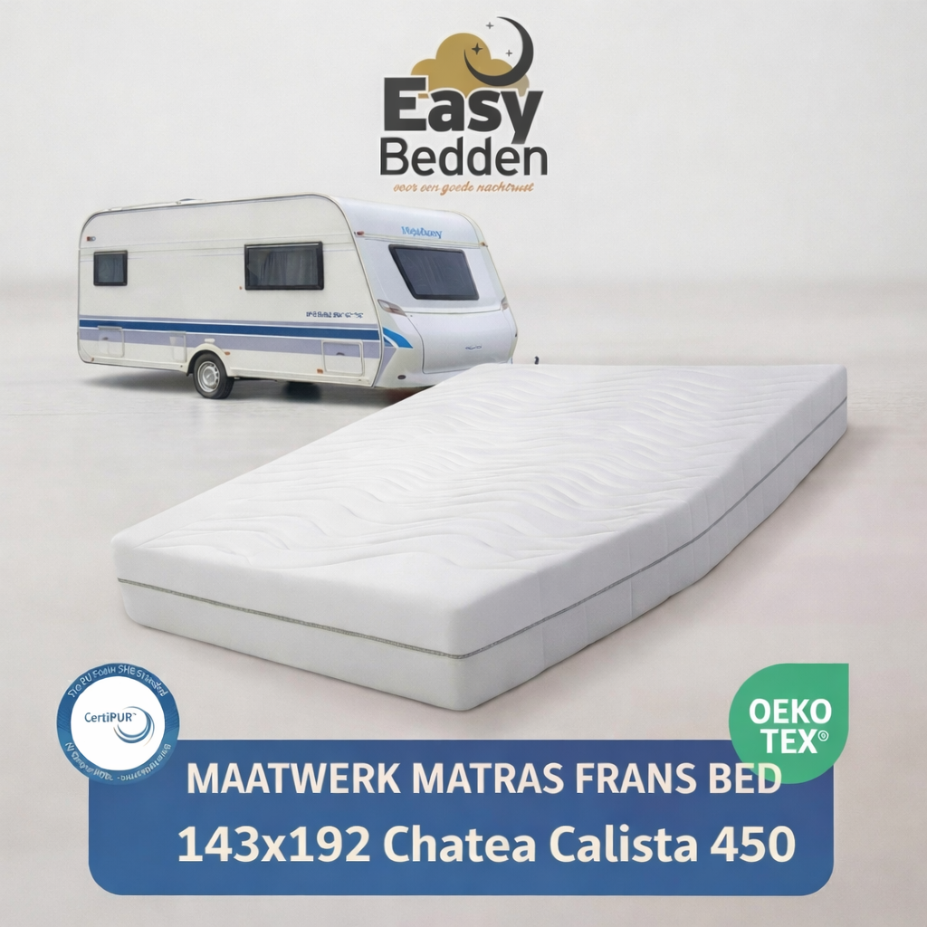 Maximale ruimte en maximaal comfort voor uw vakantie. Dit extra brede maatwerk matras van Easy Bedden is speciaal ontworpen voor de royale Franse bedden in de grotere caravanmodellen.